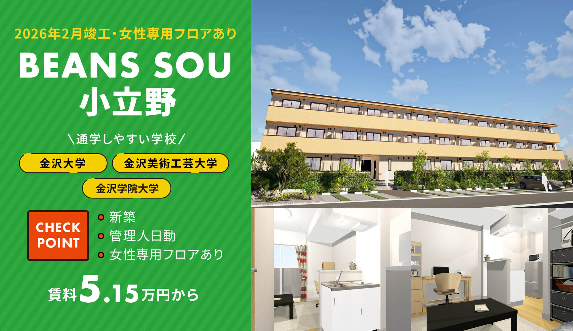 金沢市内周辺の大学・専門学校生におすすめの食事付き学生マンション
