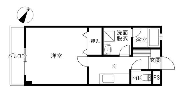 室内は、キッチン・脱衣室・お風呂・トイレの水廻りスペースと、部屋・収納・ベランダのスペースがしっかりとゾーニングされた生活しやすい間取りです。