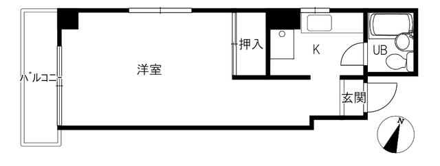 1Kタイプはお部屋は約9帖。バストイレ洗面所が同室タイプとなっております。
