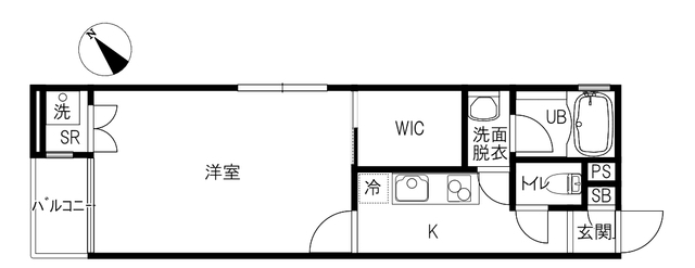 お部屋は1Kの間取りになっており、広いウォークインクローゼットが印象的です。