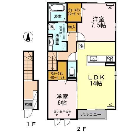 間 取 り洋7.5 洋6 LDK14