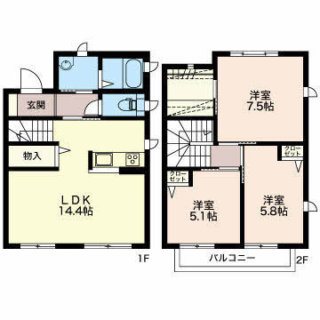 間 取 り2階 洋5.1 洋5.8 洋7.5/1階 LDK14.4
