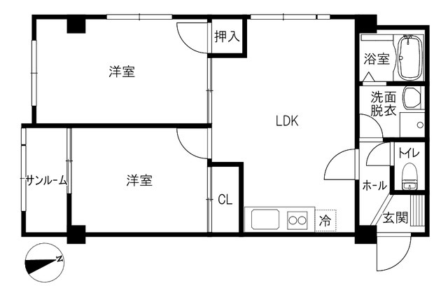 朝シャンも楽々な洗髪洗面化粧台、IHコンロ2口備付けのシステムキッチン、洗濯物を干せるサンルーム、クローゼット、収納もあります。トイレはもちろん温水洗浄便座つき。魅力がいっぱいのマンションです。