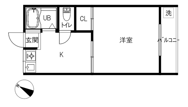 お部屋はシンプルな1Kですが、お風呂とトイレが別々のセパレートタイプ。ガスコンロ1口備付きです。