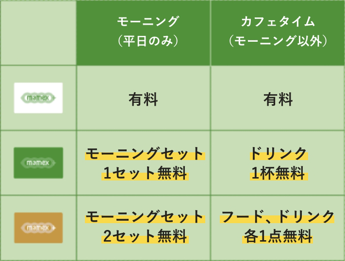 のうか不動産の入居者サービスを利用する際にはマメックスカードが必要です。このマメックスカードがグリーンやゴールドへランクアップすると、カフェ・ビーンズご利用時の特典が上乗せされるんです!