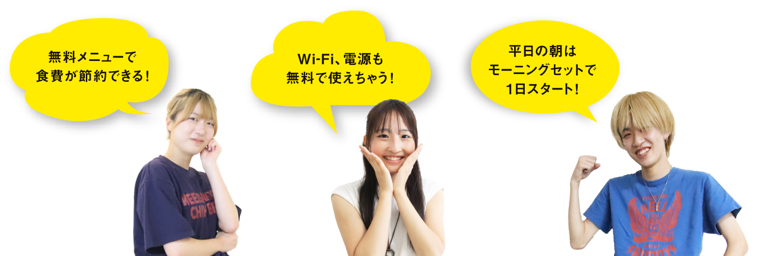 り&栄養満点の朝食をはじめ、すべてのメニューがリーズナブルな価格設定。また、勉強スペー