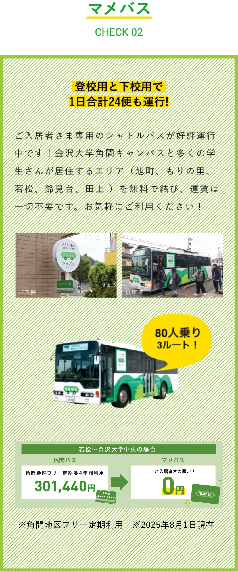 ご入居者さま専用のシャトルバスが好評運行中です!金沢大学角間キャンパスと多くの学生さ