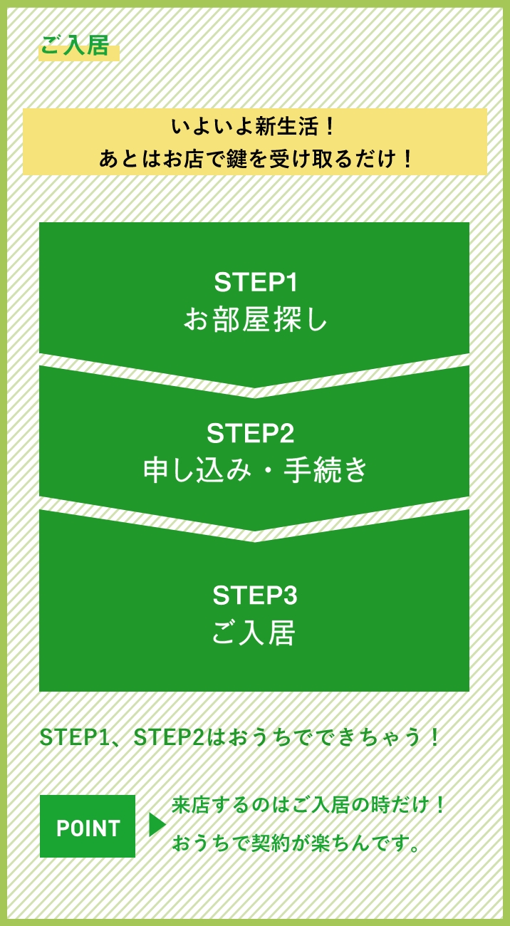 - 来店せずにお部屋が抑えられてスムーズです。